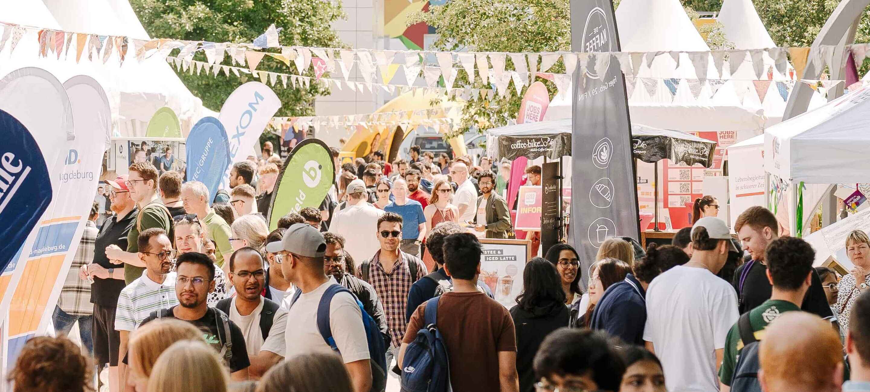 Stell dir einen Sommertag auf dem wimmelnden Campus der Otto-von-Guericke-Universität Magdeburg vor. Angeregte Gespräche, Musik liegt in der Luft, Menschen, die stehen bleiben, lachen und ins Gespräch kommen. Zwischen Wimpelketten, grünen Wiesen und Bühnenprogramm entsteht das, was modernem Recruiting oft fehlt: echte Begegnungen und Verbindungen.